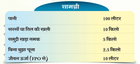 सबसे पहले 100 लीटर पानी में 10 किलो खली मिलाएं, खली को 10 मिनट तक फूलने दें और फिर इसमें 2 किलो बिना बुझा चूना मिलाएं और खली और चूना को घुलने दें फिर इसमें 5 किलो नमक मिलाएं, 8 से 10 घंटे में यह घोल तैयार हो जाता है, इस घोल का पीएच अधिक (छारिय) हो जाता है इसके छार को कम करने के लिए 10 लीटर राह जीवन ऊर्जा मिलाएं। और सिंचाई जल के साथ मिलाकर जमीन में जड़ों के आसपास जाने दें।