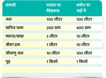 200 लीटर पानी में 500 ग्राम खनिज भस्म, 10 लीटर जीवाणु घोल और 500 ग्राम गुड़ मिलाकर अच्छी तरह घोलें। इस मिश्रण को ढककर चार दिन तक छांव में रखें। इसके बाद तैयार घोल को फसलों पर स्प्रे करें या सिंचाई जल के साथ जमीन में प्रवाहित कर दें।