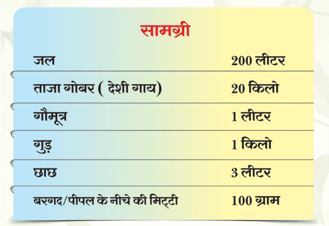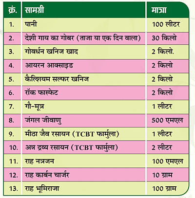 किसी छांव के नीचे ड्रम या टैंक में सभी सामग्री को मिलाकर 7 दिनों तक रखें। इसके बाद घोलकर छान लें और तैयार घोल को एक एकड़ कृषि भूमि में डाल दें।