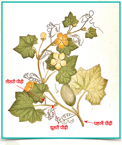 बहुत से पौधों में फल मुख्य रूप से तीसरी और चौथी पीढ़ी की शाखाओं पर आते हैं। पहली और दूसरी पीढ़ी की शाखाओं पर सामान्यतः केवल नर फूल बनते हैं, जबकि तीसरी और चौथी पीढ़ी की शाखाओं पर मादा फूल विकसित होते हैं। लता वर्गीय फसलों में लौकी इसका प्रमुख उदाहरण है। लौकी में तीसरी पीढ़ी की शाखा पर हर पत्ती के नोड से एक मादा फूल की कली बनती है। इस कली को प्राप्त करने के लिए विशेष कटिंग प्रक्रिया अपनाई जाती है, जिसे थ्री-जी कटिंग कहा जाता है। इसी प्रकार चौथी पीढ़ी की शाखा पर प्रत्येक पत्ती से दो मादा फूल निकलते हैं, जिसे फोर-जी कटिंग कहा जाता है।