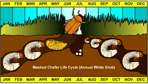 सभी सामग्री—10 लीटर पानी, 2 किलो कुचल एरंड के बीज, 100 ग्राम यीस्ट, 500 ग्राम बेसन और 500 मिली छाछ—को मिलाकर 24 से 48 घंटे फर्मेंट होने दें। इसके बाद छोटे-छोटे मटके लें और प्रत्येक मटके में 5 लीटर पानी डालें। फर्मेंट किए हुए घोल को हर मटके में 1 लीटर के हिसाब से डालकर खेत में पेड़ों के नीचे, प्रति एकड़ 10 मटके के हिसाब से अलग-अलग स्थानों पर रखें। इस घोल की गंध से मादा व्हाइट ग्रब्स आकर्षित होकर इसमें प्रवेश करती है और मर जाती है, जिससे कीट नियंत्रित होता है।